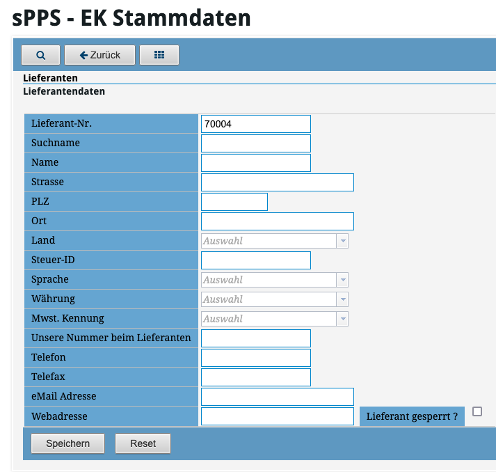 Wird ein neuer Lieferant angelegt, erscheint eine Erfassungsmaske.