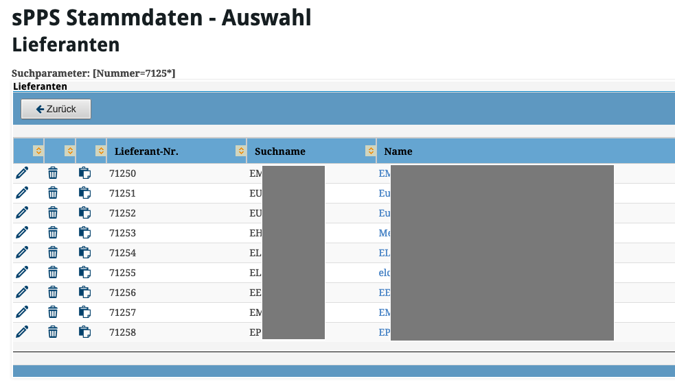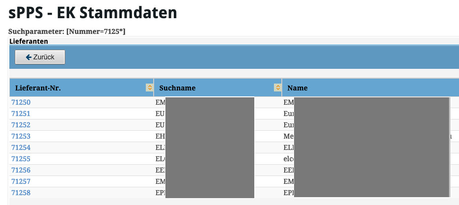 Mit einem Klick auf eine der blau hinterlegten Lieferantennummern gelangen Sie