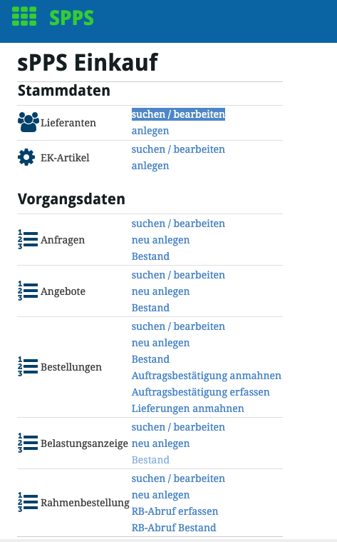 Von hier aus soll einen schneller Zugriff auf Lieferanten erfolgen können. Die